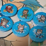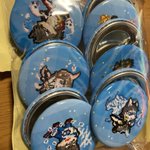 今度のけモケットに出す缶バッジ届いたのー ミキ(@mine_miki0840)と合同で出店するよ 発色も良さそうだし、いい感じに印刷されてるみたいで嬉しい♥ #放サモ #ドット絵