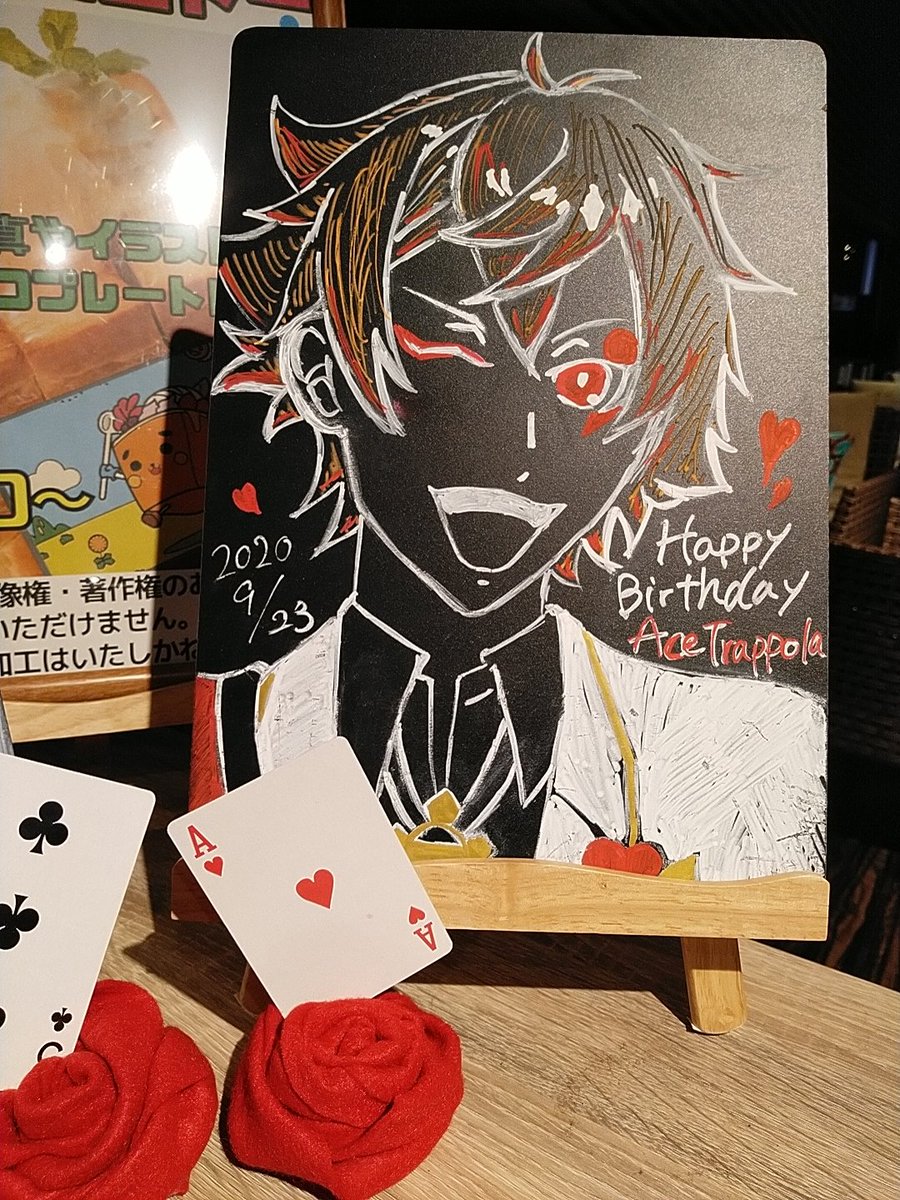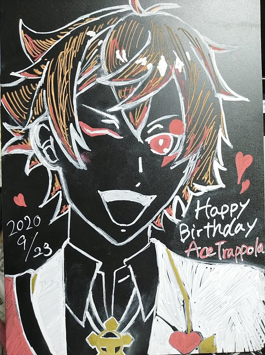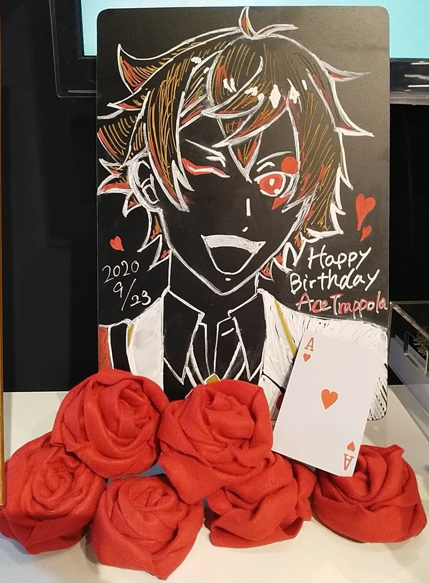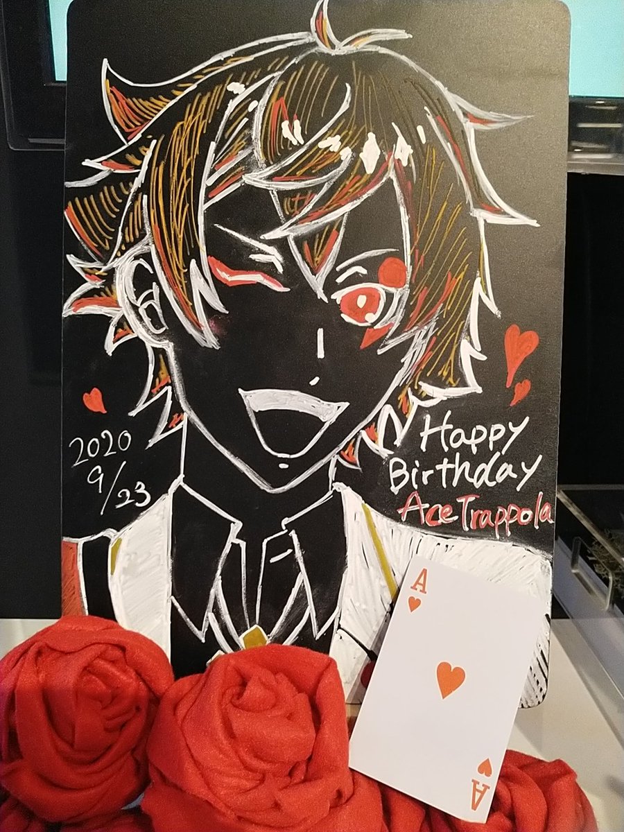 エース、誕生日おめでとう! 実は昨日から飾ってます! 今回はほとんど模写ですが…💦 どうぞ、お納めください( *´꒳`* ) #エース・トラッポラ生誕祭2020 #エース・トラッポラ誕生祭2020 #ツイステファンアート #ブラックボード