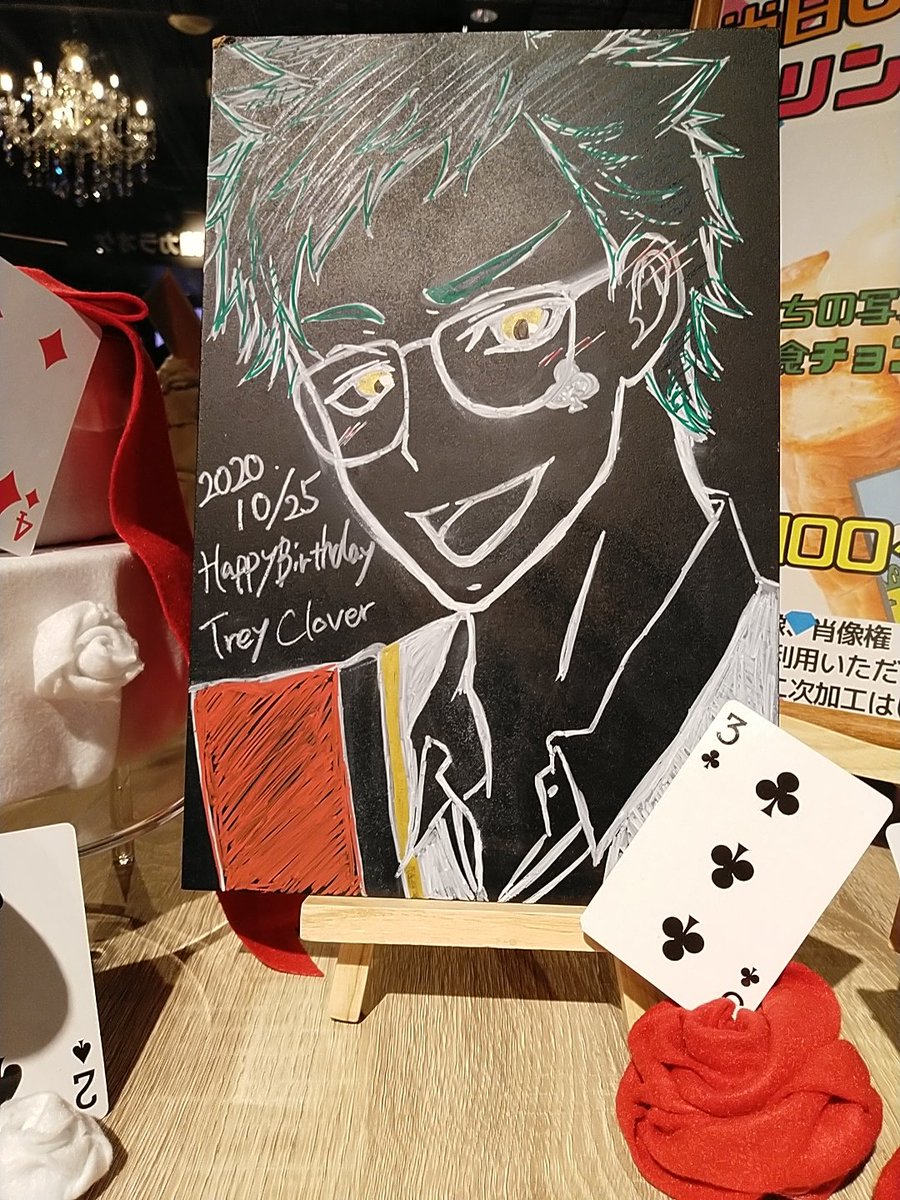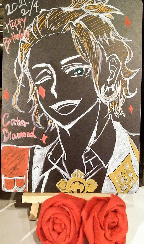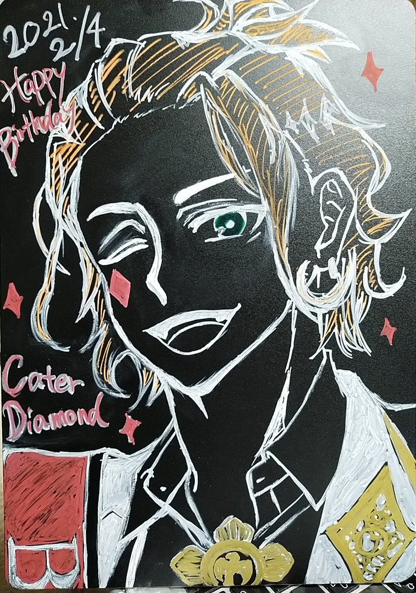 当日出勤じゃなかったからお祝い遅れちゃってごめんよー…! けーくんお誕生日おめでとうございました! 職場にも飾ってきました( *´꒳`* ) あ、けーくんのスマホケース発売おめでとう! #ケイト・ダイヤモンド生誕祭2021 #ケイト・ダイヤモンド誕生祭2021 #ツイステファンアート #ブラックボード