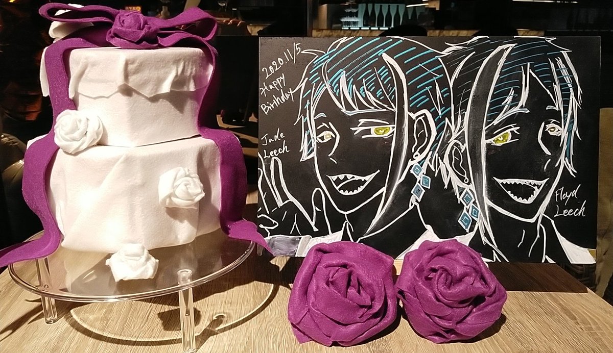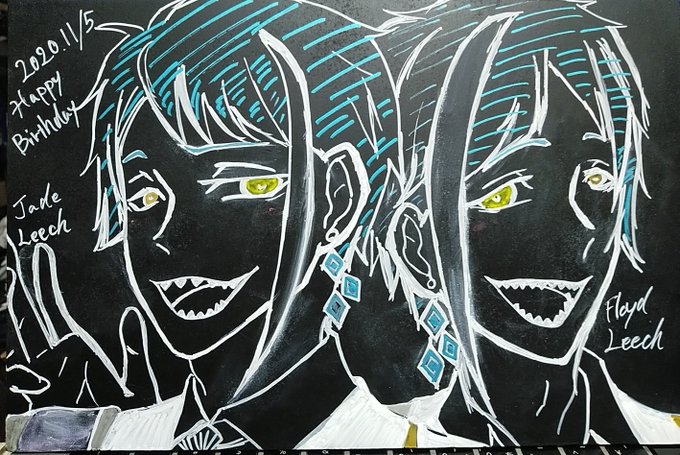 リーチ兄弟、お誕生日おめでとうございます〜! うーん… 初描きだから許して欲しい… 紫の薔薇はフェルトで^^ #ジェイド・リーチ誕生祭2020 #ジェイド・リーチ生誕祭2020 #フロイド・リーチ誕生祭2020 #フロイド・リーチ生誕祭2020 #リーチ兄弟生誕祭2020 #ツイステファンアート #ブラックボード