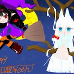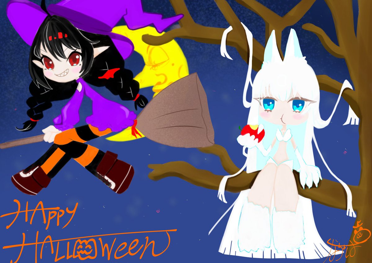 うちの子で 一足先にはっぴーはろうぃーーん( ˙³˙) 魔女っ子小悪魔(⃔ `꒳´ )⃕↝ 真っ白狼娘🐺 実は月が1番気に入ってる← #イラスト #秋の創作クラスターフォロー祭り #絵師さんとつながりたい #ハロウィンイラスト展示会2021