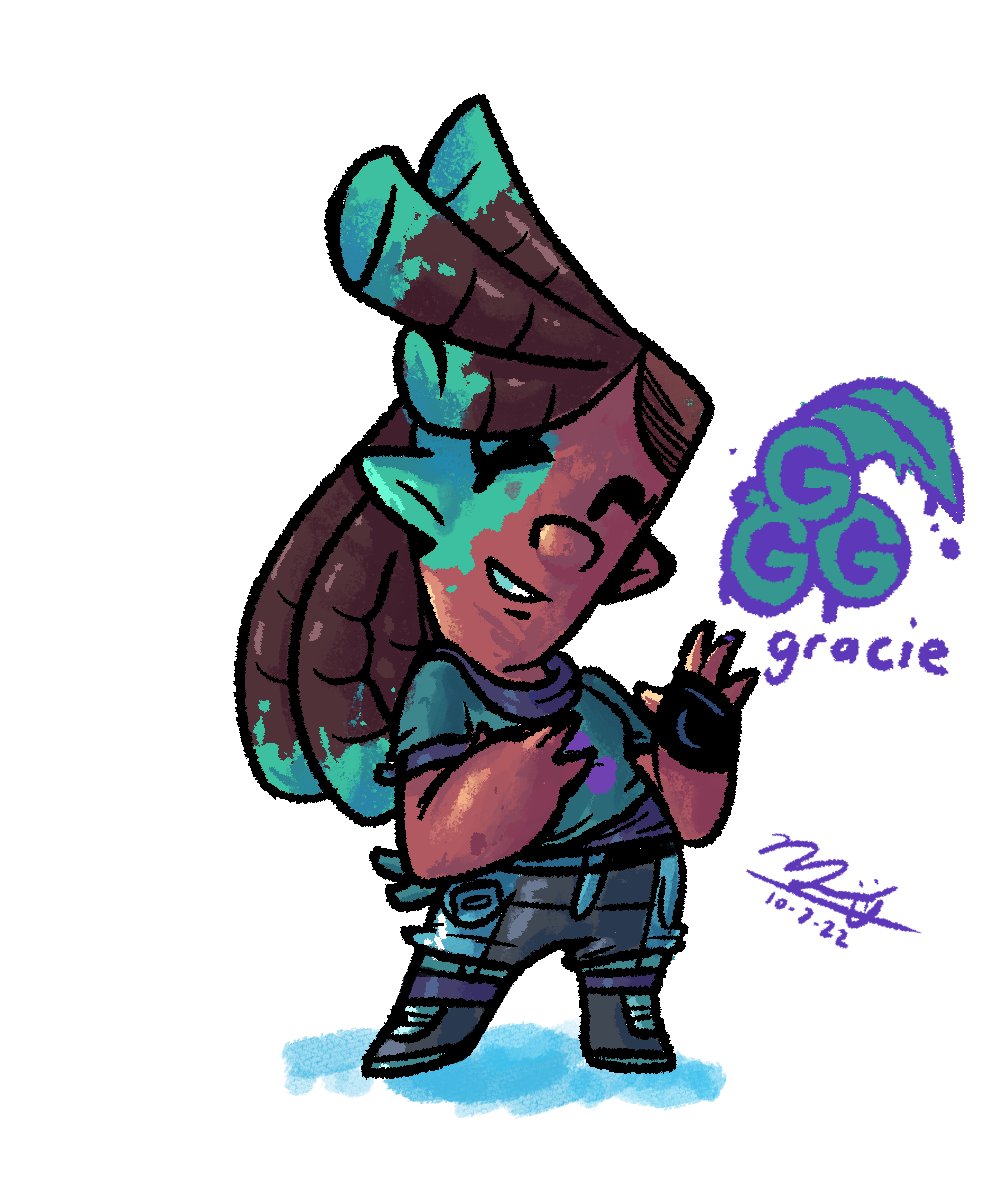 Some tweaks here and there to clean up her silhouette and overall design. Still the same old bass playing, loud mouthed, lovable Cherri. : ) #characterdeisgn #illustration #