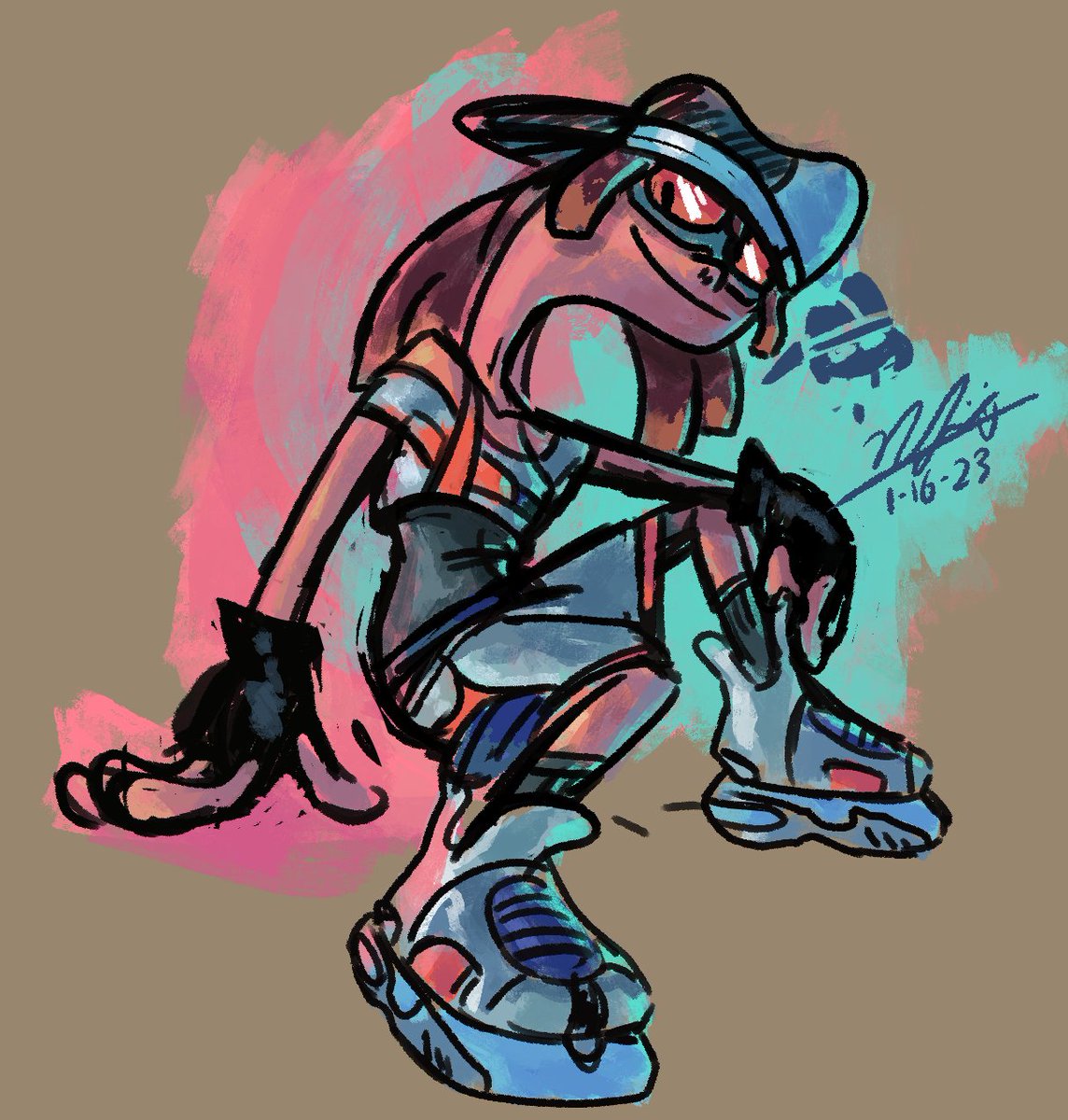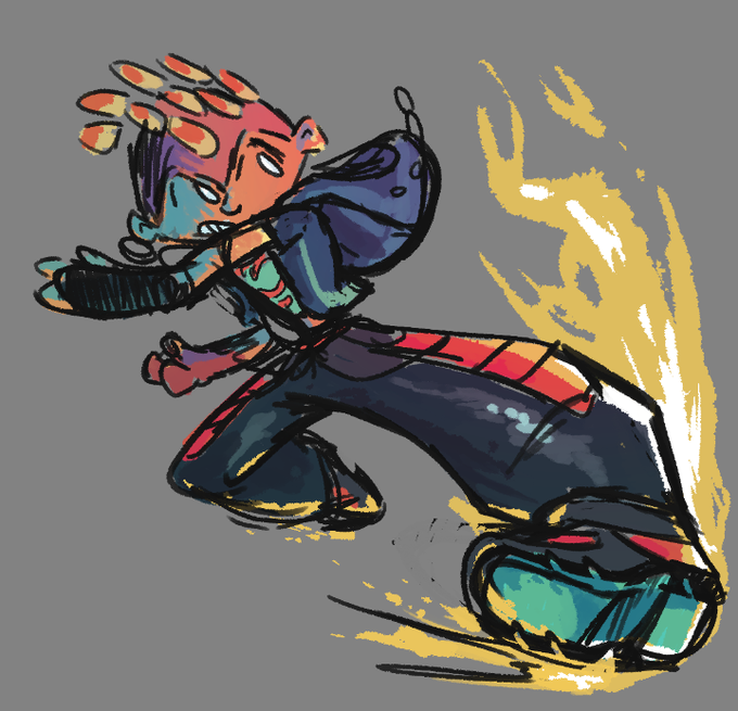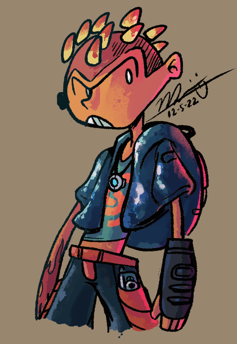 00's incarnate! Finally messing with this dude's design and colors after so long. HE HAS NO NAME, BUT HE'S GOT DRIP AND HIS HODDIE ACTS AS A BACKPACK. #Y2K #characterdesign #sketch #digitalart