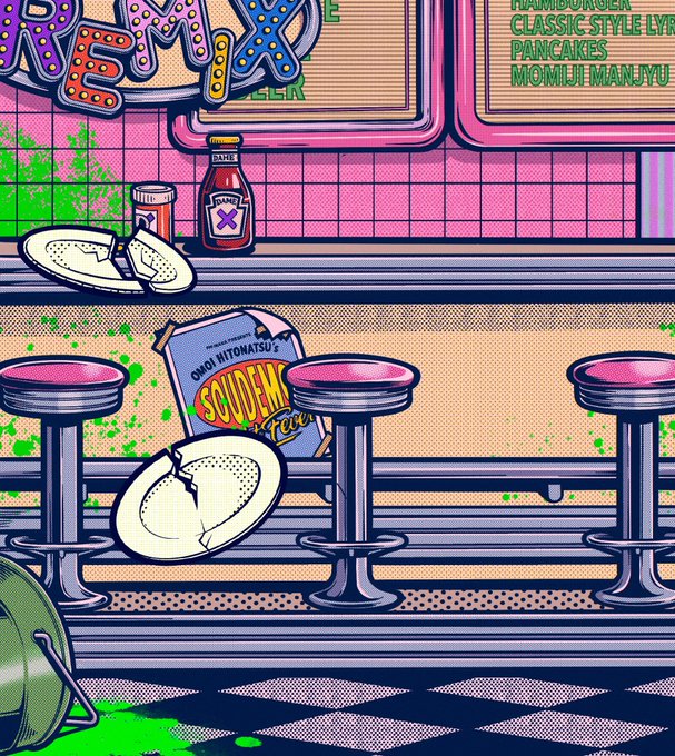 🍟 INFO 🍟 メダなつイバミュウさんチームのSirBiz-remix- 駄ゞ田さんのめちゃかわいい立ち絵とコラボさせていただきまして、 背景を描かせていただきました! 素敵なMVぜひご視聴ください♪ twitter.com/dadada_datarou…