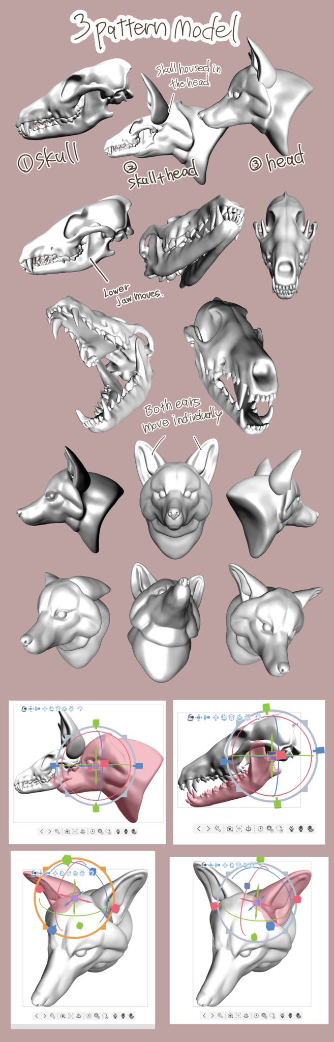 コヨーテの頭骨とヘッドを公開しました!噛み合わせも概ね再現してます。耳とか動かせるよ。期間限定で値引き中です! assets.clip-studio.com/ja-jp/detail?i…