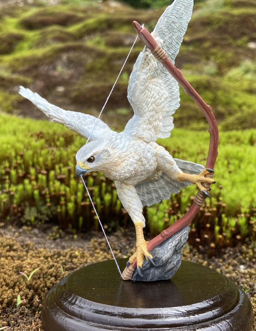 樹山さん(@kiyama_tb )のキット、弓鷹を塗りました!ようやく完成して嬉しいです🦅 淡い色が美しいグレーオオタカに塗ってみました