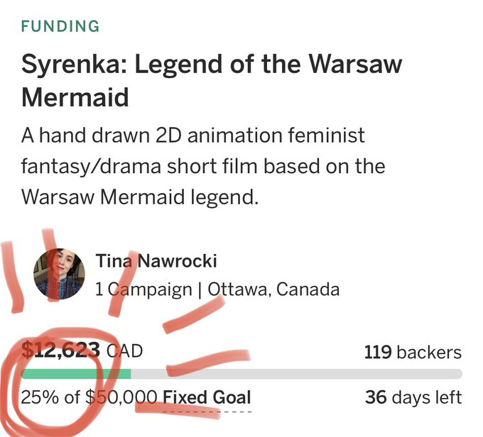 SO CLOSE! Inching towards 20k!!! We're missing 250$ to hit that milestone! Can we make it this weekend???? Please donate if you can, and SHARE! Less than a month to go to hit our all-or-nothing goal and fund @SyrenkaFilm !!! #mermay #indiefilm #2danimation