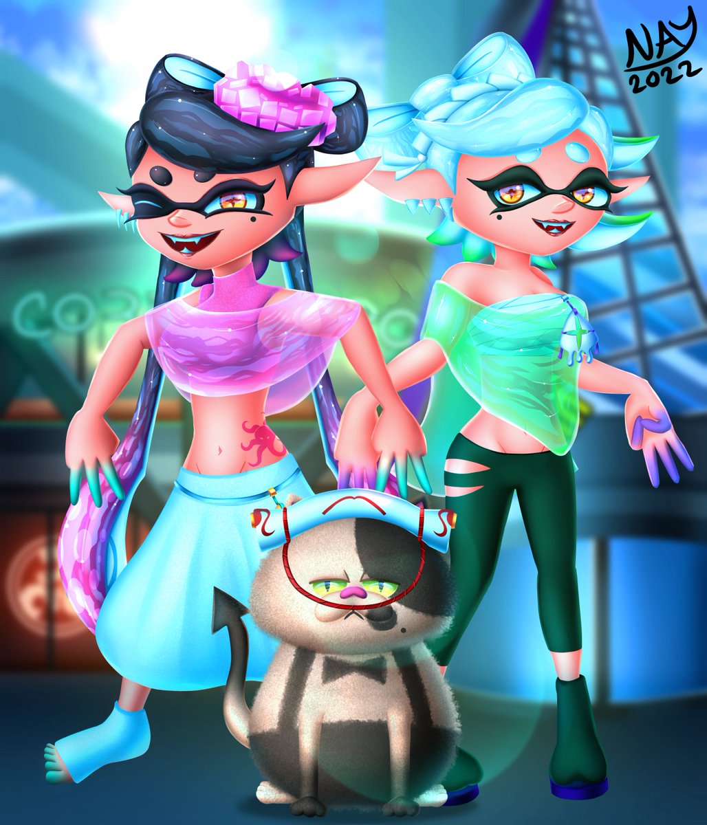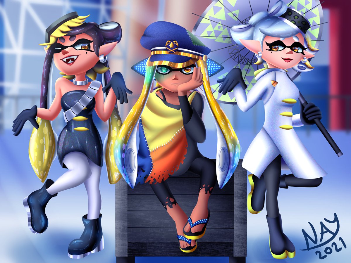 Stay Later! Squid Sisters and Deep Cut outfit swap pt. 2 #Splatoon #Splatoon3 #Splatoonfanart #artistsontwitter