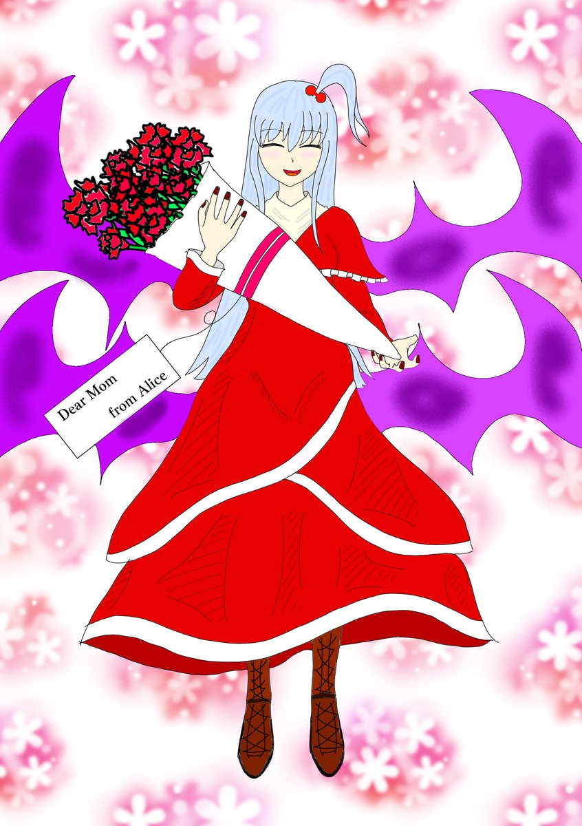 9 16 母の日なので神綺様描きました (背景はアイビスの素材です) 20/05/10 00:34
