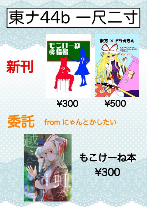 夏コミのお品書きです!!! 当サークルの新刊の他に、サークル「にゃんとかしたい」さんの新刊も委託しております 日曜日東ナ44bでお待ちしております🙏 #C100お品書き
