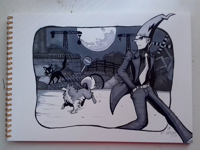 #inktober #inktober2018 -Don't follow any prompt list, neither the ink rule- 3rd Day with #Raika and #SearchMan from #MegaMan! that's was close today, so it's looks a little rushed...