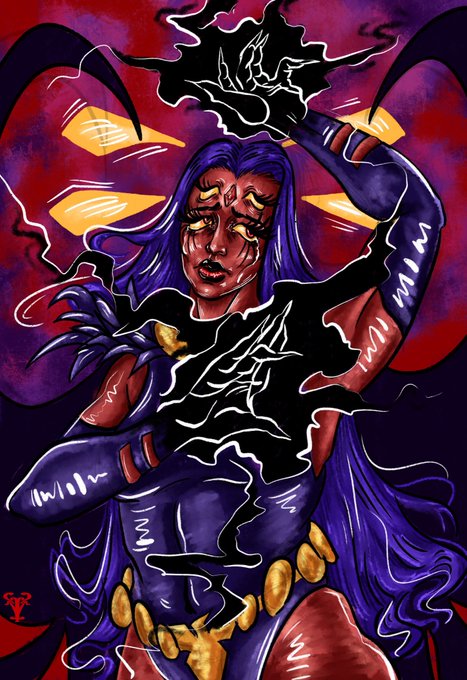Bad bitch with daddy issues I referenced a mix of costumes and for her darkness manipulation i referenced the animated teen titans style And i modeled the pose✨💅🏻 #raven #dccomics #digitalart #ArtistOnTwitter #artistsontwitter