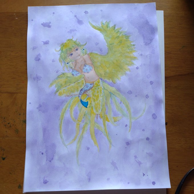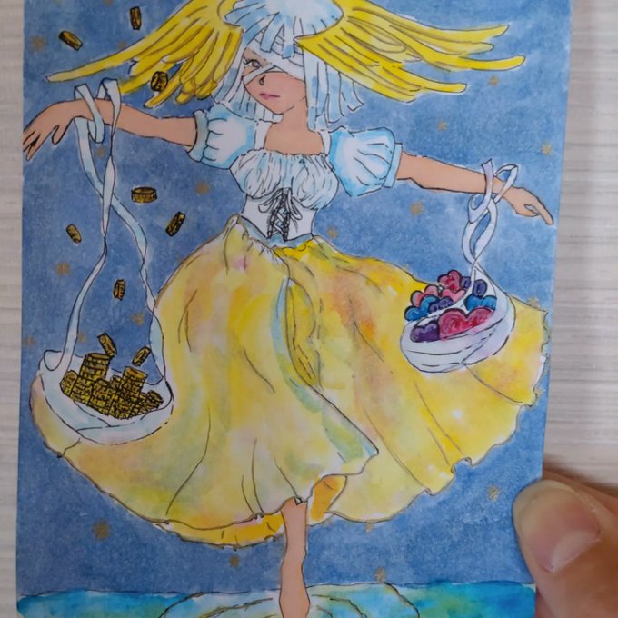 色塗り完了✋ ケント紙に水彩だからヨレるなぁ… 水張りして描くなら下描きを直接かかないといけないかな…下描きしてからの水張りは失敗する気がするし…悩む #天秤座 #女の子イラスト #アナログイラスト #イラスト好きな人と繋がりたい #イラスト好きさんとつながりたい #水彩画 #アナログ絵