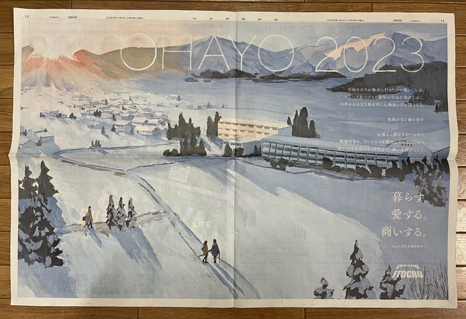 昨年夏に続いて伊藤忠商事の企業広告のイラストレーションを描かせて頂きました。 2023年 1月4日 日本経済新聞朝刊掲載 #illustration #illustrator #painting #art #gouache