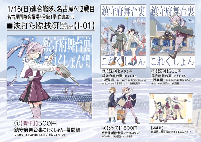2/19艦隊名古屋4【F-11】にて「鎮守府舞台裏これくしょん 支度編」を頒布いたします。「艦娘たちの支度」がテーマのフルカラーイラスト集です。 秋刀魚祭りin FSWや、アニメ等に関連したイラストが収録されています。 メロンブックスさんでもお取り扱い中です。よろしくね! melonbooks.co.jp/detail/detail.…