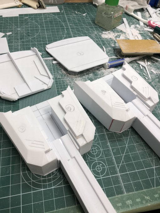 ちょー久々の模型。 どこを取り掛かってたかを思い出すのが大変…。 まずは、肩パーツのダクト部から再開。 2/8作製、残り6/8。 #タコザク #ガンプラ