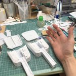 1/35タコザク 腕エンジン部分のパーツの切り出し。 切り出すだけでやばいぞこれ。 #ガンプラ #プラ板