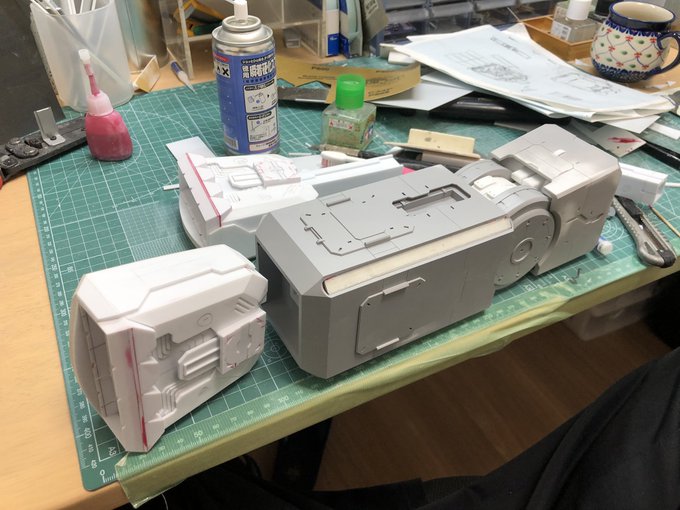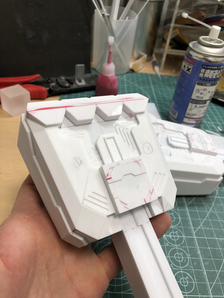3 17 ちょー久々の模型。 どこを取り掛かってたかを思い出すのが大変…。 まずは、肩パーツのダクト部から再開。 2/8作製、残り6/8。 #タコザク #ガンプラ 21/12/11 23:46