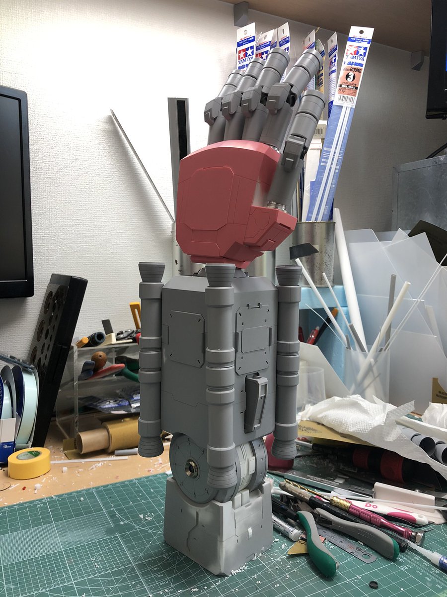 1/35タコザク よし拳以外の腕完成! 疲れた…仕事より疲れた…笑 これから、これを本体に付けれるようにしないと。 #ガンプラ #プラ板