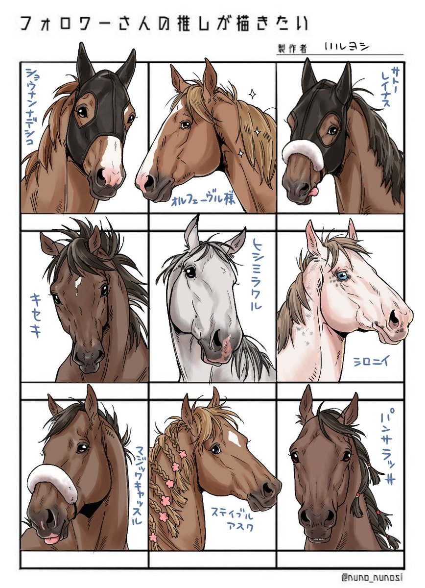 #フォロワーさんの推しが描きたい 少し間があいてしまいましたがリプくださった方々ありがとうございました!色んなお馬さんがかけてとても楽しかったです✨ 一枠あいてたので自分の推しのステイブルアスクちゃんもいれました🌸 twitter.com/Neal_cjjss/sta…
