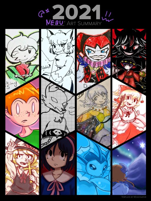 So I wasn't going to partake in this since I thought I wouldn't have enough art each month to share, guess I was wrong. Just a mix of traditional and digital art this year! Template by @/mossygator_ #artsummary #artsummary2021 #digitalart #traditionalart