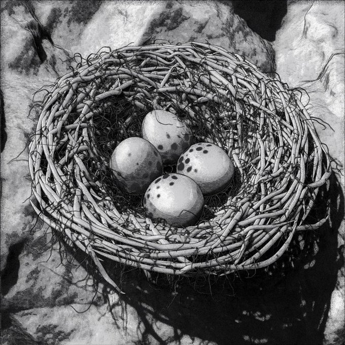 #inktober2022 #nest Tilias are our orni species. In their early days, Tilia nests were made of corals and wood. The species soon evolved to a more progressive way of living. Nowadays, the entire family sleeps in a circular bed (similar to nests) in the middle of the living room.