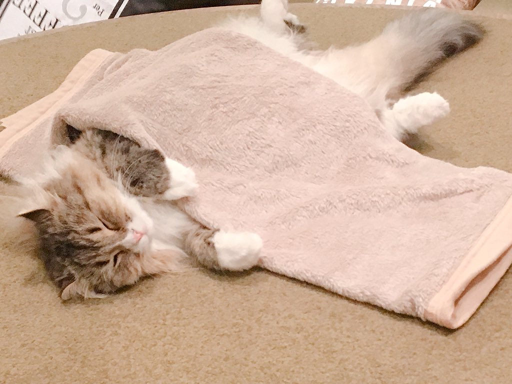 猫カフェでメタ子フィギュア第2弾の打ち合わせしてきた🐈🐈🐈布団かけられてる猫めっちゃかわいかった…
