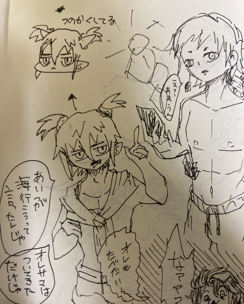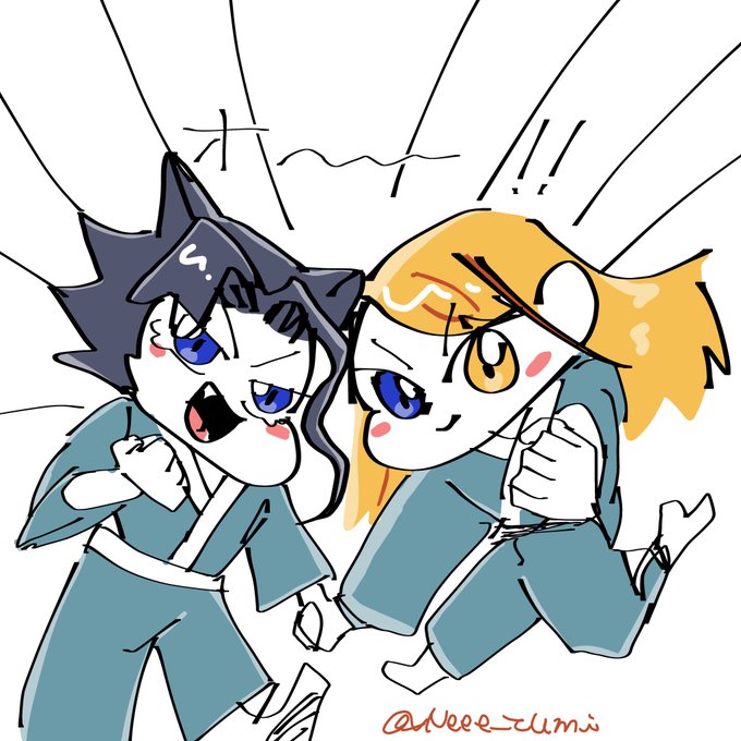 こんなに可愛い顔してたのか2人とも... ってか風彦赤いの着てたんだね #イラスト