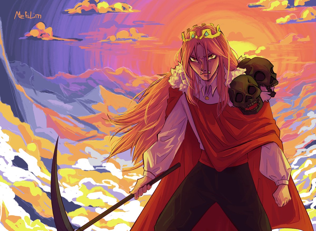 Holy hell I never posted this here??? I thought it'd be cool to do that funky cloak thing with the wither skulls, the backgrounds kinda whatever tho so- It flopped on Tumblr, big sad 😔😔 #technobladefanart #dreamsmpfanart