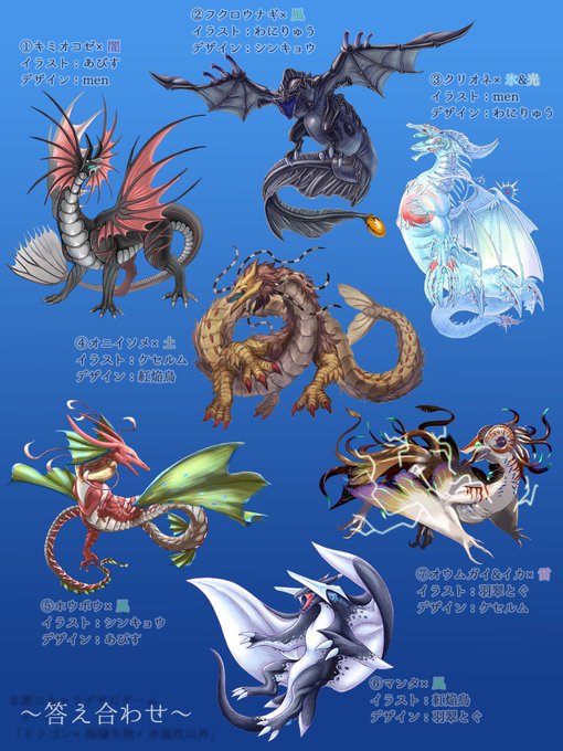 誰デザ結果発表!! 私が担当したデザインは⑦のドラゴンでした〜!! あんまりバレないかな〜と思ってたんですが、意外と票が入ってましたw 企画、参加者の皆様、そして投票してくださった方々ありがとうございました!!✨🐉 twitter.com/neganeura/stat…