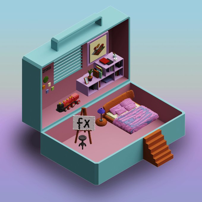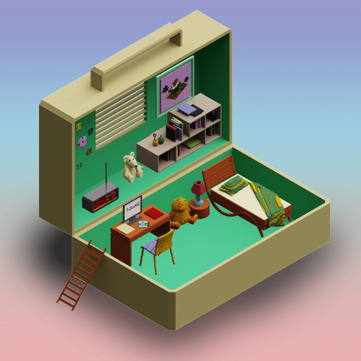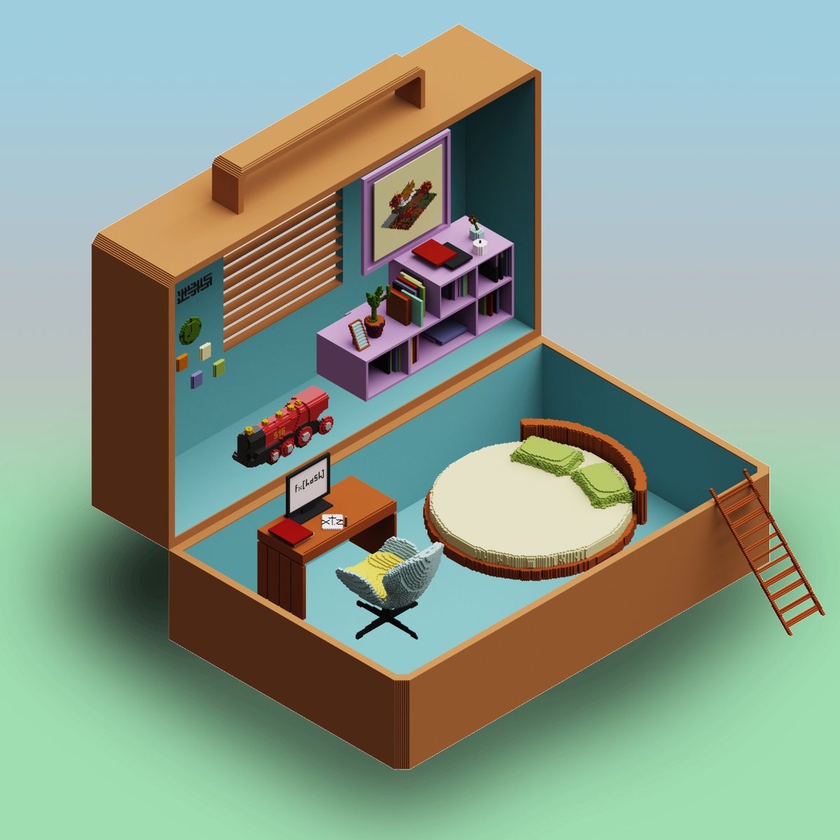 fxhash.xyz/generative/slu… -Suitcase life -She lives in a suitcase -Made with Magicavoxel 2048x2048 -mint price:0.4 $xtz -69 Ed -Minting opens:today #voxel #voxelart #tezos #tezosartweek #tezosart #fxhash #NFTs #nftcollector #NFTCommunity #artshare #tezoscollectors #tezoscommunity