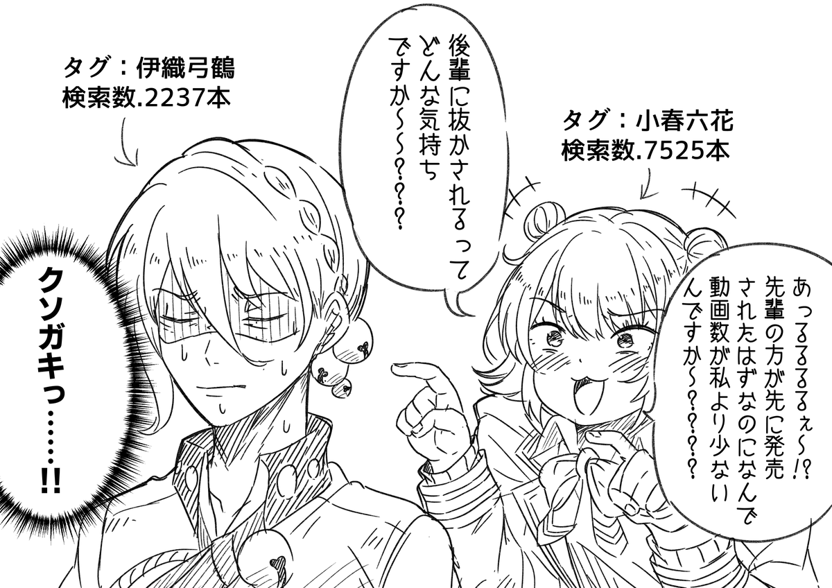 随分と前にウザイ後輩な六花ちゃんと不憫先輩な弓鶴くんを描いてたなぁ~みたいなのを思い出してのラクガキ。 弓鶴くんの動画なんでこんな少ないんや……。