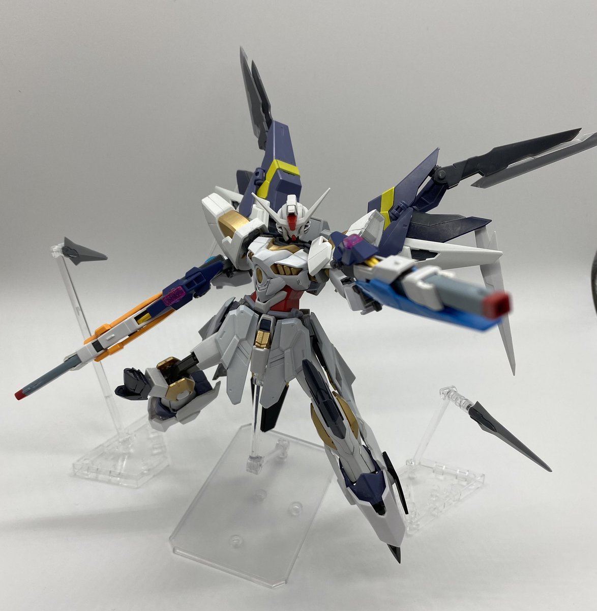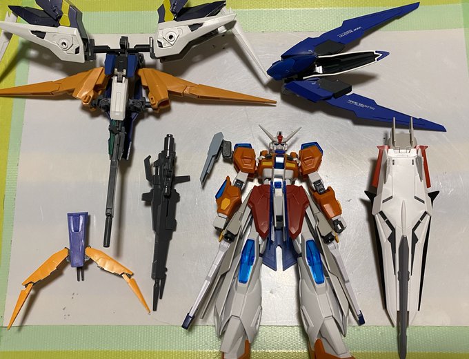 "多分"4年前に創った機体を見つけたお 今の愛機に《OOの胴体・トールストライクの頭部・トランジェントの腕部・翼要素》を取り入れてる事に気付いた 昔は「なんか違うな…」と未完成の状態で終わったのだが、現在になって完成させるのはエモいな(無意識) #ガンプラ #ガンプラ好きとつながりたい