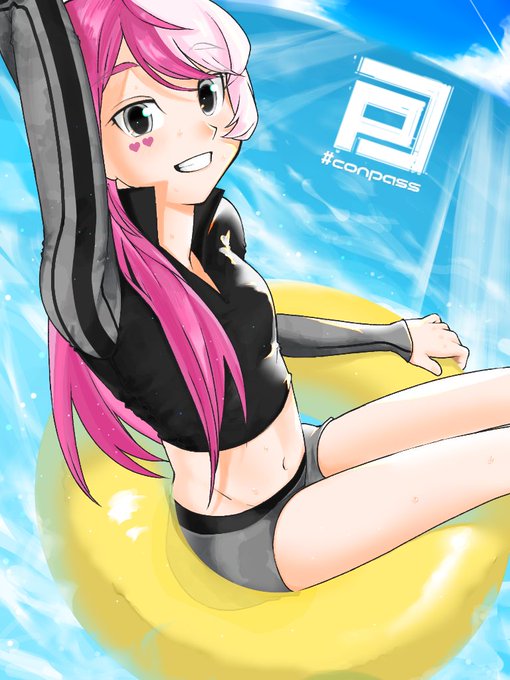36 169 暑くなってきたので夏っぽいの! 「抱き合って一緒の浮き輪に乗ろうね!ハビー!」 水着メグめちゃ好き〜!! #コンパスお絵描き 23/06/04 18:04