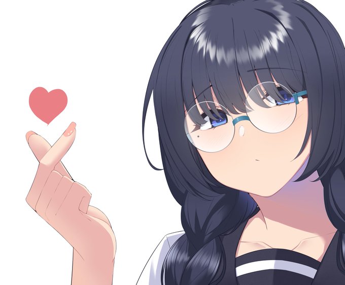 澄まし顔で指ハートする女の子