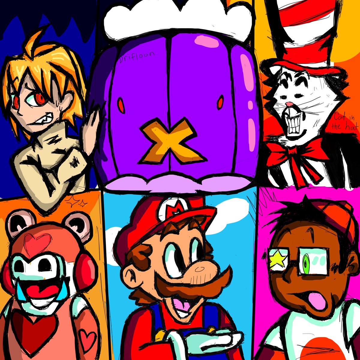 #SixFanarts #sixfanartchallenge A smorgasbord of different characters: @GamerCore234 : Mike Myers Cat in the Hat (Dr. Seuss) @brodees_main Drifblim (Pokemon) @SandileIsBest Verbalase @Mokumiza Mario @mewbeans_ Gayle (Animal Crossing) @Nokira9 Arcueid (Melty Blood)