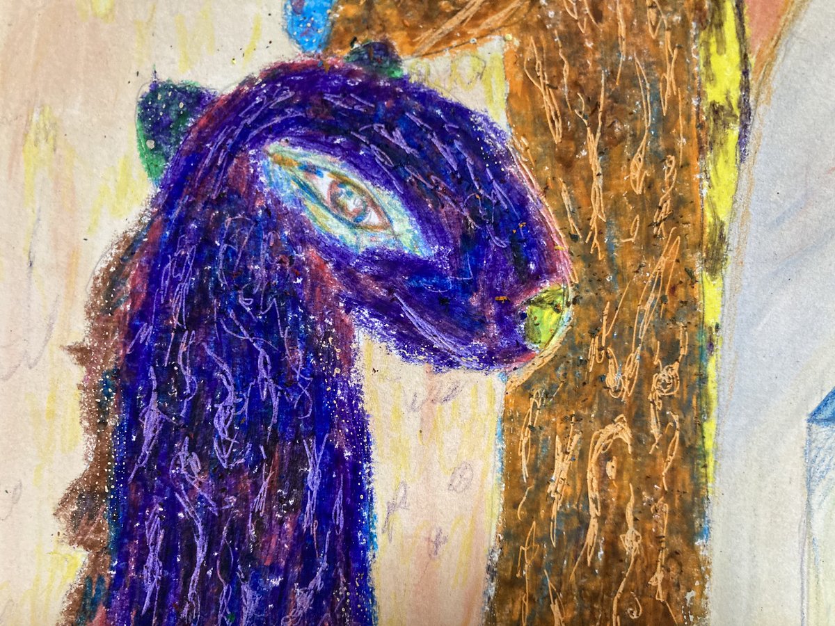 0 4 不思議な夢を見たのでかいてみた。今までかいたことのない感じになった。 #水彩画 #クレヨン #アート #Art #馬 #ベッド #夢100 22/03/29 22:51