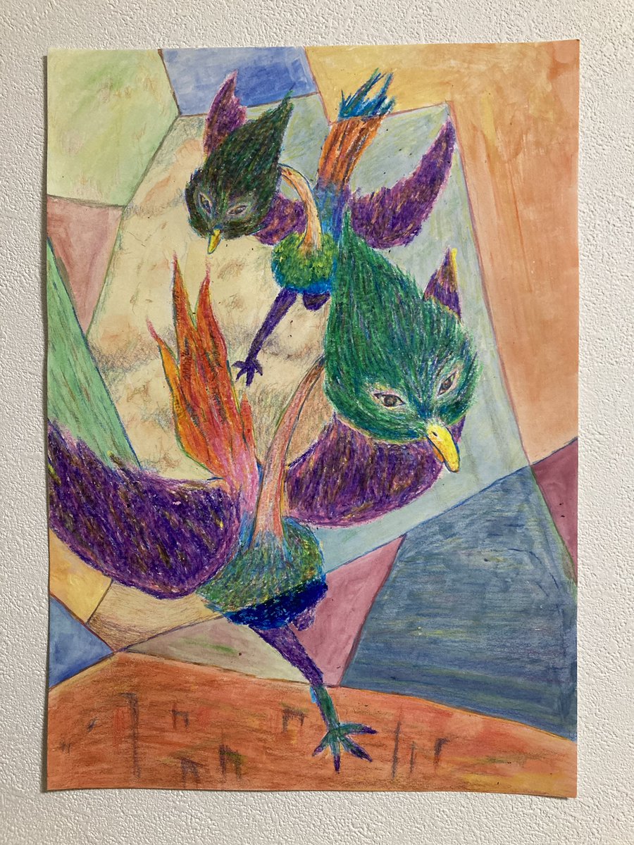 0 3 夢に出てきた走る鳥 #クレヨン #水彩画 #筆ペン #artistsoninstagram #イラスト #Illustrator 22/05/28 23:16