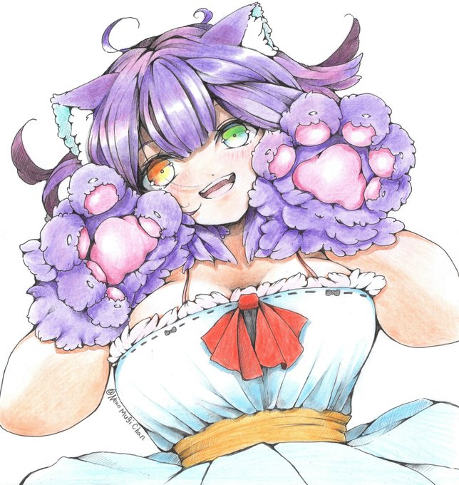 肉球を見せびらかす者 #色鉛筆 #猫耳 #イラスト