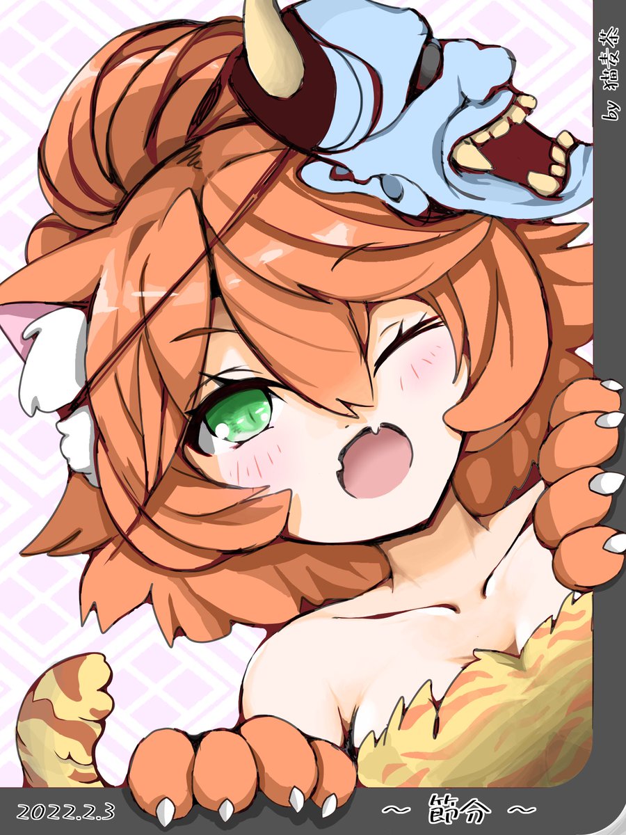 13 48 #節分 #色鉛筆 なぜか毎年恒例になった節分にしか登場しないうちの子! 23/02/03 20:24