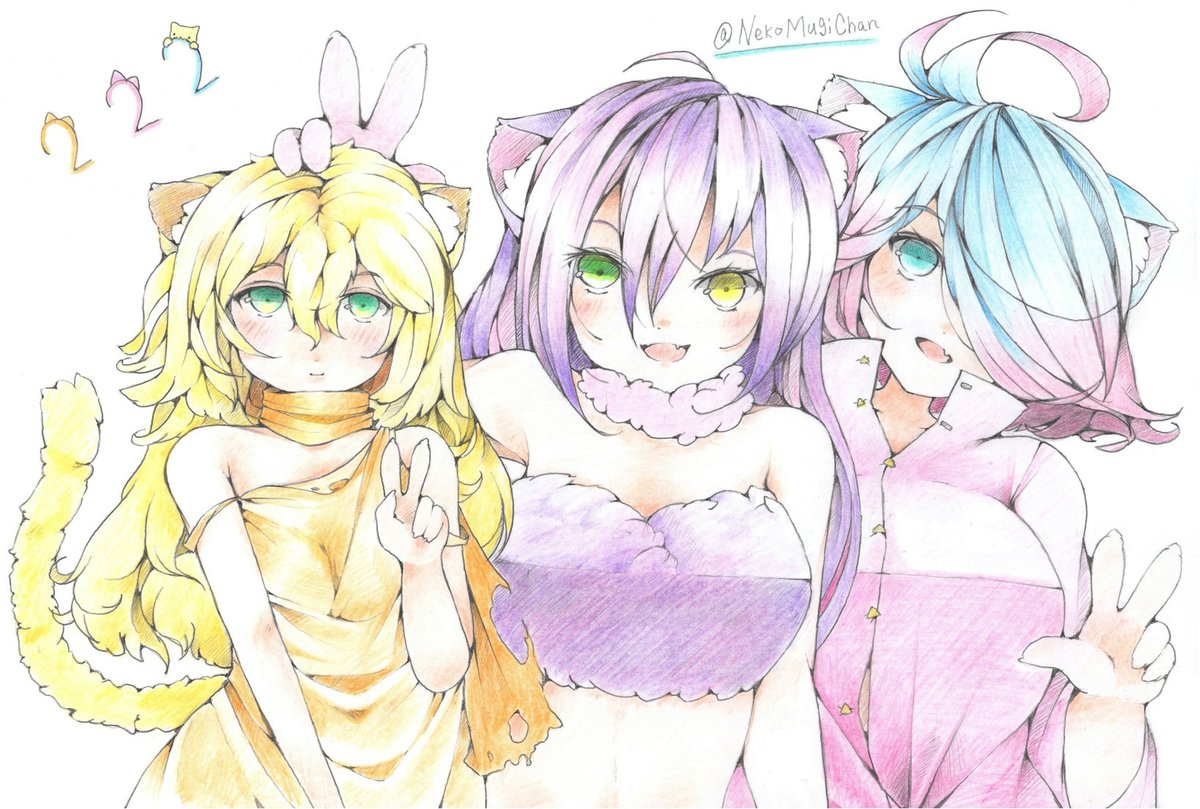 にくきゅうねこちゃん! #色鉛筆 #猫耳 #イラスト