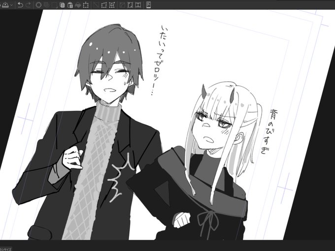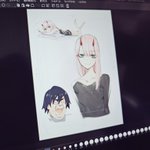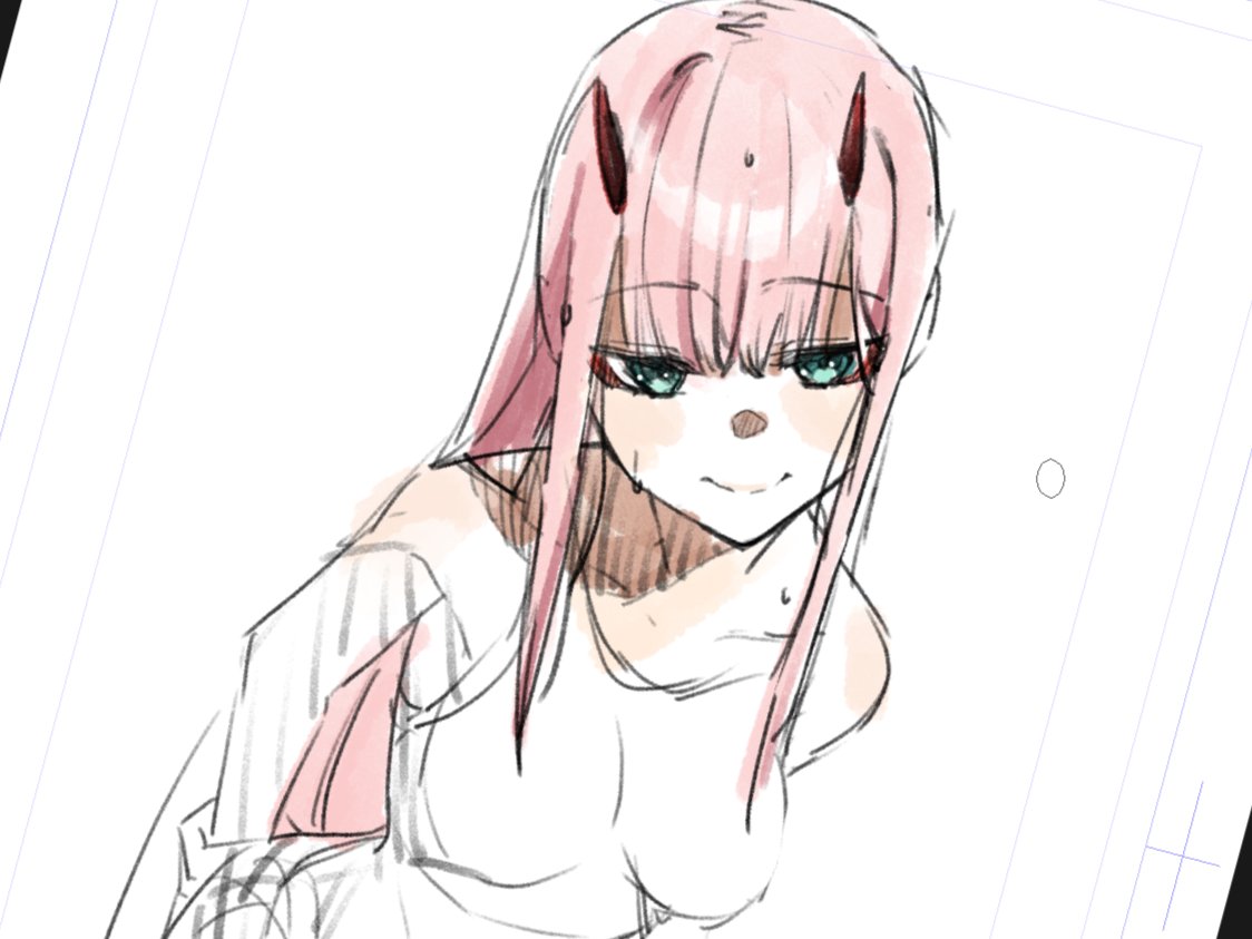 これまでどんなゼロツー描いてたかなぁと参考に振り返ったら液タブ買ったばかりのころに落書きしたゼロツーが可愛かったからもっかい載せる。