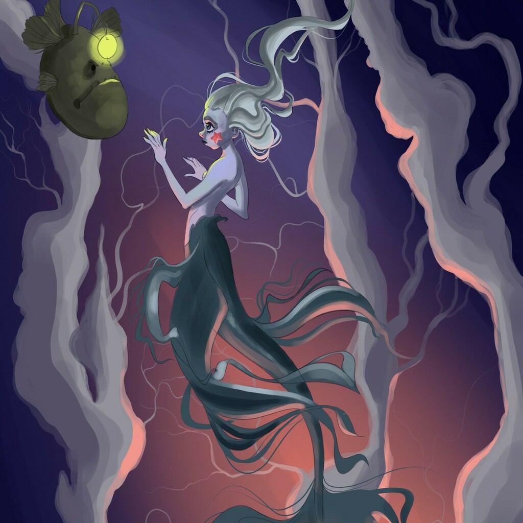 #wip of the colouring of the mermaid with her spooky lantern fish 💪 I am very slow... 😐 and besides I don't have so much time to draw and practice colours, shadows and ligthting Do you think it's going well? #mermay #mermaid #illustration #art #digi… instagr.am/p/CdnTmHiDXJl/