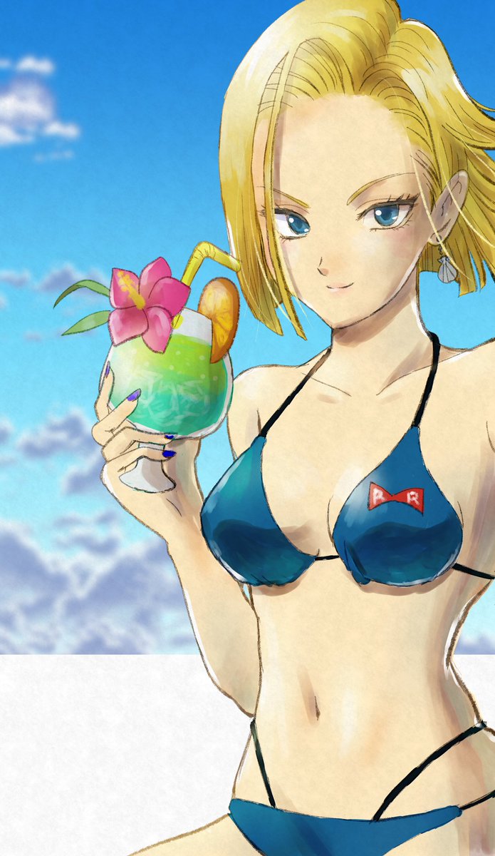 2 8 スマホに接続できるちっこいペンタブ買ったので描いてみました! 子供見ながらなので寝室に置いてあるパソコンは無理だしアナログは道具イタズラされそうだしで画面小さくて描きにくいけどこれなら育児しながらお絵かきできるー!水着の18号さん👙 22/08/31 15:53