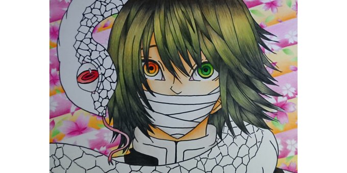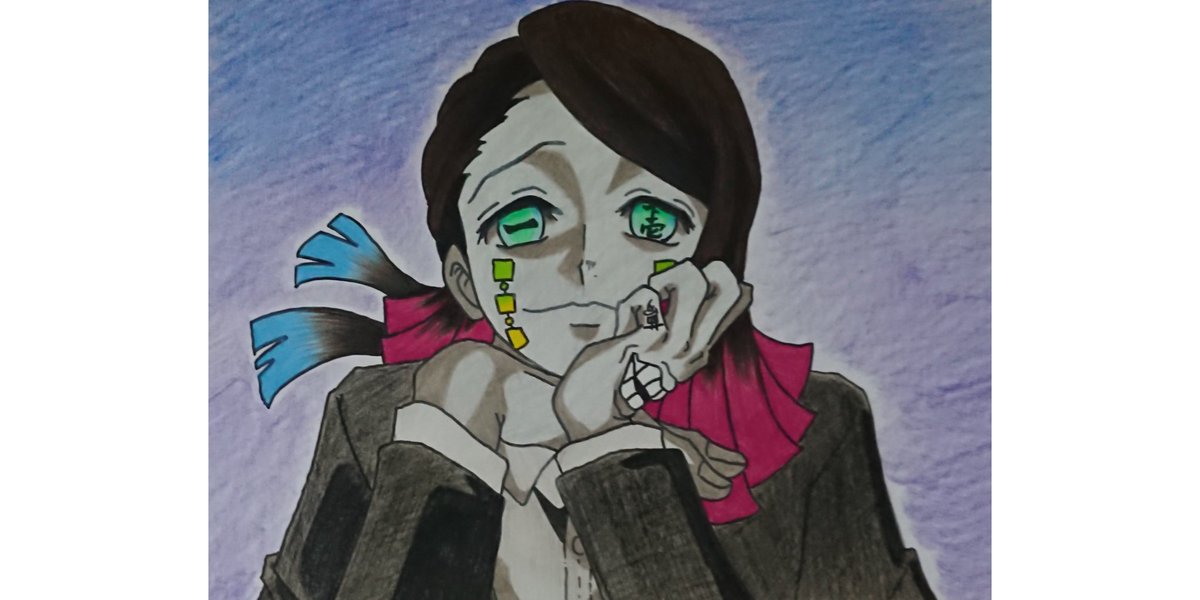 前にシャーペンで描いたのと同じイラストを描いて、今回は色を塗ってみた(´ω`) #鬼滅の刃 #伊黒小芭内 #イラスト好きさんと繋がりたい #絵描きさんと繋がりたい #アナログ #色鉛筆