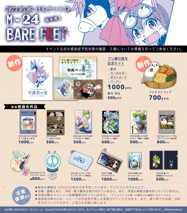 【 イベント参加 】 ◆5/6 #けもケット13 ◆F-03:BARE FEET 新刊「プレアデスの両脚・守護者の星」 新刊+グッズセット、新作キーホルダーがあります! あと過去作品もいっぱいあります ◇通販 5/6・20時~ alice-books.com/item/list/all?…