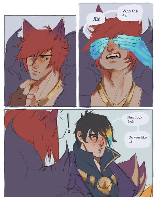 First fanart of the year yepee๐ Actually I don't know how I could draw all this, my love for them won over my laziness ๐ฅน (Read left to right) #Settphel #aphelios #sett #LeagueOfLegends #fanart #spiritblossom