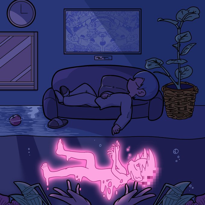「夢に堕ちる」 「暗い部屋」というお題の元、3時間で表現してみました。 #イラスト3hバトル