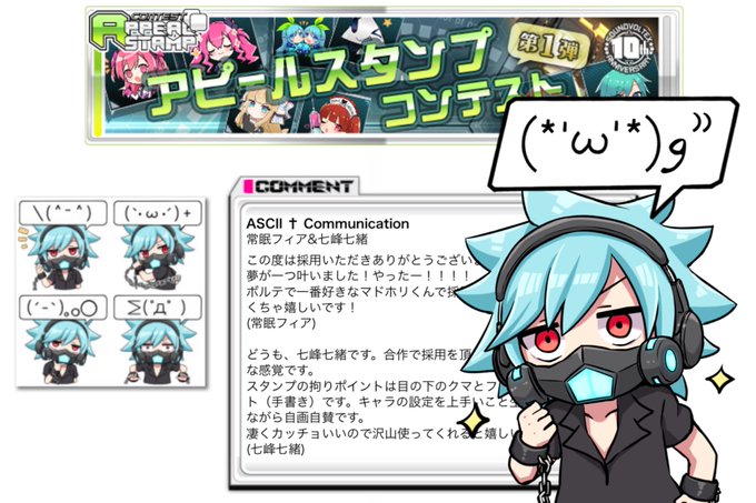 【告知】 SOUND VOLTEX「アピールスタンプコンテスト」にてMAD†HOLICくんのスタンプで採用を頂きました!✨✨ 七峰七緒さんとの合作です! よろしくお願いします!!!!🔥🔥 #SDVX twitter.com/soundvoltex573…