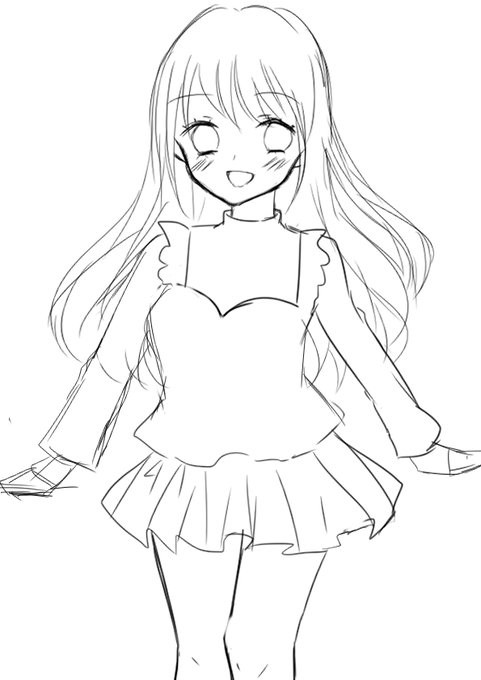 #皆さん線画と塗った後を見せてください 一番最新のこれしかない